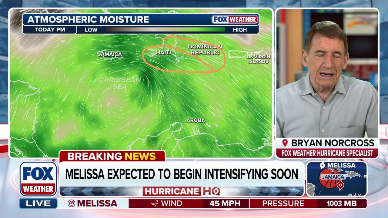 FOX Weather Hurricane Specialist Bryan Norcross provides his analysis of Tropical Storm Melissa. Melissa is forecast to begin the processes of intensifying and is expected to become a hurricane in the coming days, eventually reaching Category 3 or 4 strength.