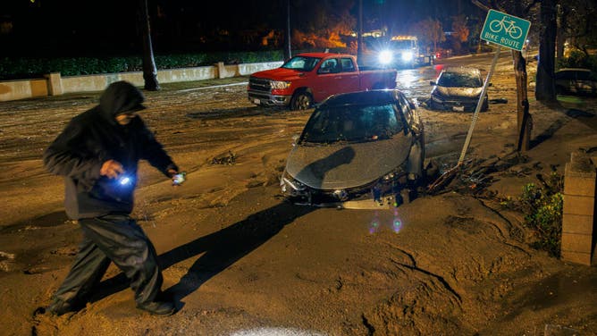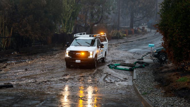 Video taken from around the burn scar left from the deadly Palisades fire showed roadways becoming mud streams as rainfall rates were estimated to have reached at least an inch per hour. Residents near burn scars in multiple counties had been told to either evacuate or be ready to at a moment's notice as the storm arrived.