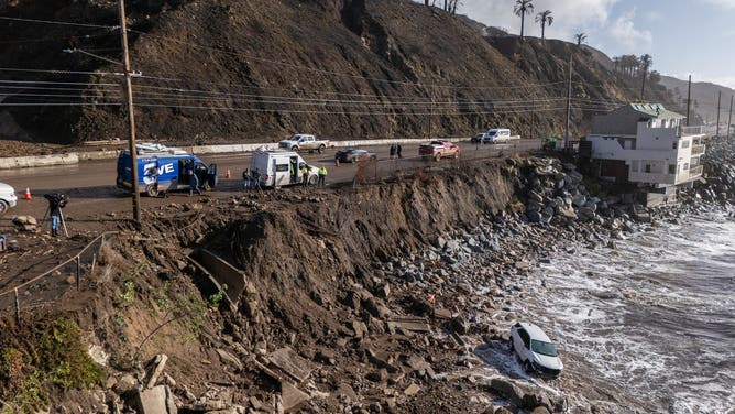Las Flores road in Malibu, California hit with mudslide amid atmospheric river