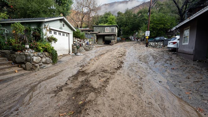 LOS ANGELES – Torrential rains from a potent atmospheric river soaked nearly the entire state of California Thursday, triggering flash flooding up and down the state and transforming burn scars left from historic wildfires in Southern California into streams of mud.