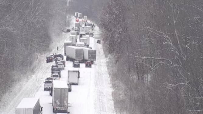 The storm will take off through the Northeast, bringing mainly rain with a wintry mix to the Mid-Atlantic and New England.