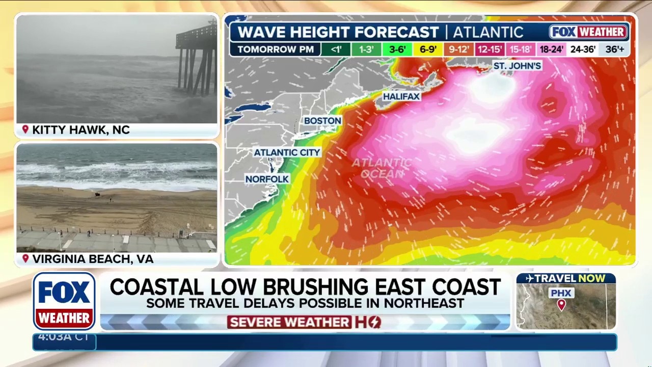 A coastal storm bringing rain and thunderstorms to portions of the East Coast won't have too much of an impact, but the storm is expected to "bomb out" as it approaches Canada early this week. FOX Weather Meteorologists Britta Merwin and Haley Meier break down the latest forecast on Nov. 3, 2025.