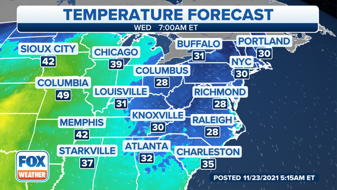 If you are heading east this holiday season, make sure you pack a jacket as cooler temperatures are setting in just in time for Thanksgiving.