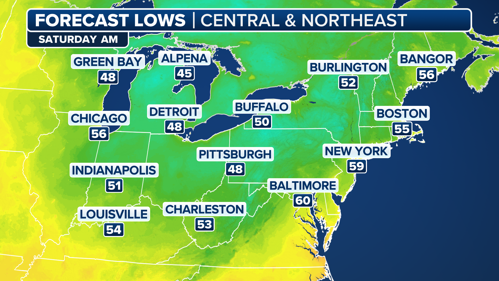 Record-setting fall-like cooldown covers 200 million in central and eastern US, lasting into Labor Day weekend