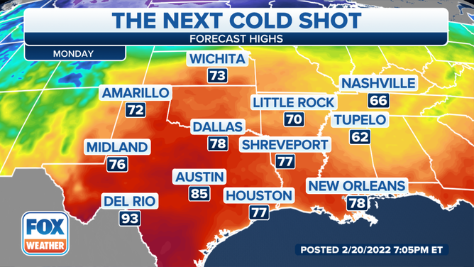 Critical fire danger Monday for Southern Plains then dangerous cold midweek