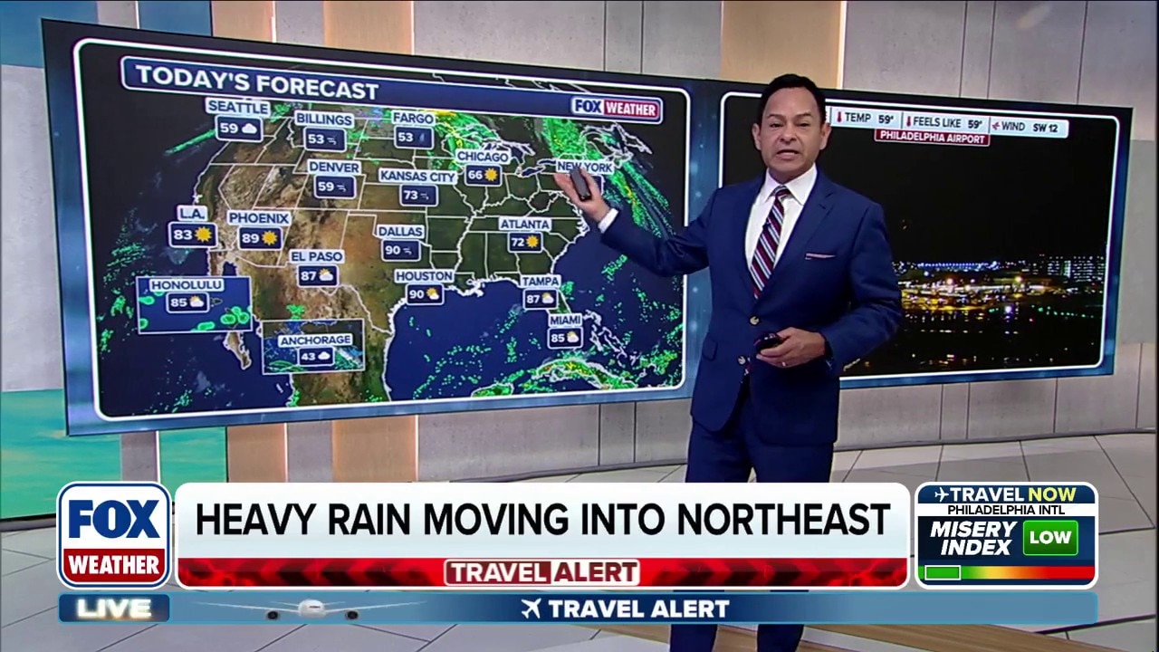 Widespread rain is soaking areas from Pennsylvania and New Jersey northward through New York and New England on Monday, leading to a slow morning commute for many cities along the Interstate 95 corridor. FOX Weather Meteorologist Craig Herrera takes a look at the travel conditions across the U.S. on Monday, Oct. 20, 2025.