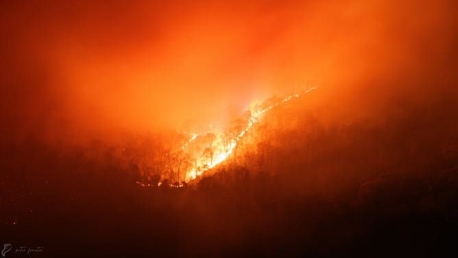 "Down in the valley floor here, colder air gets pushed down and a layer of warmer air gets trapped between two layers of cold air," Cook explains. "So actually down here in the valley floor last night, the temperatures this morning were 34 degrees; up on the fire they were 58 degrees."