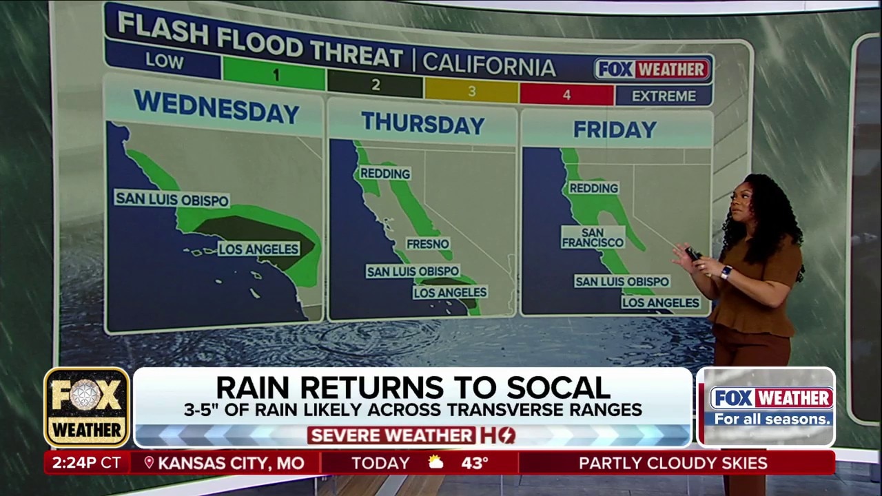 At this time, another widespread 1 to 2 inches of rain appears likely across much of the region through Friday, with locally higher amounts of 2 to 3 inches or more possible in the Transverse Ranges of California, according to the FOX Forecast Center.