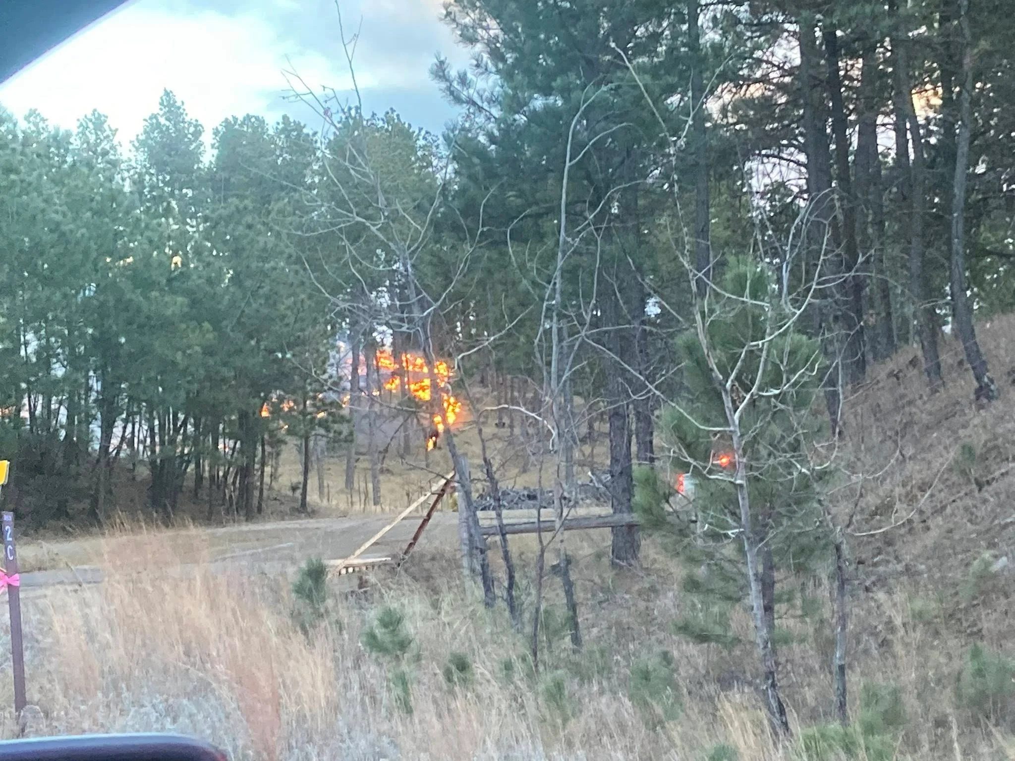 The fire is still burning near State Highway 40 between Keystone and Hayward, according to Pennington County officials.