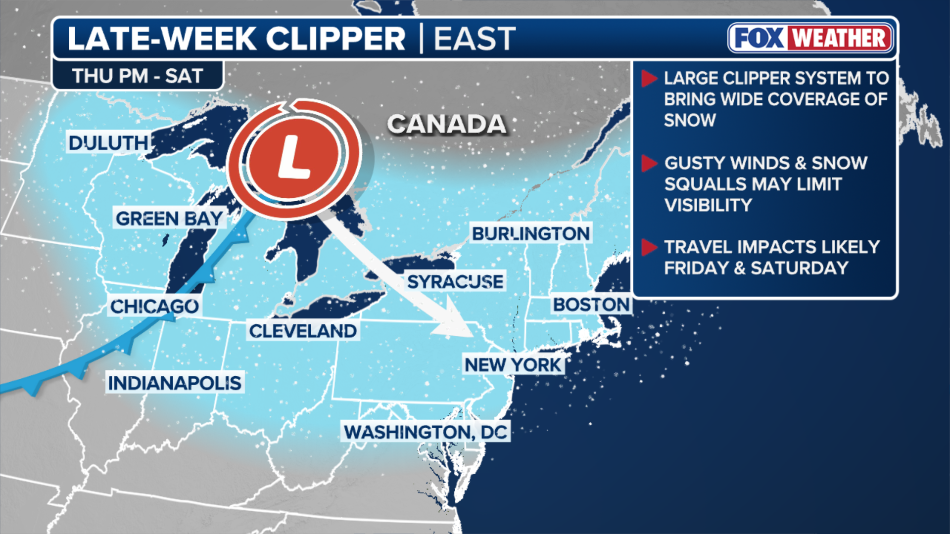 Late-week clipper could impact travel across Northeast, Great Lakes