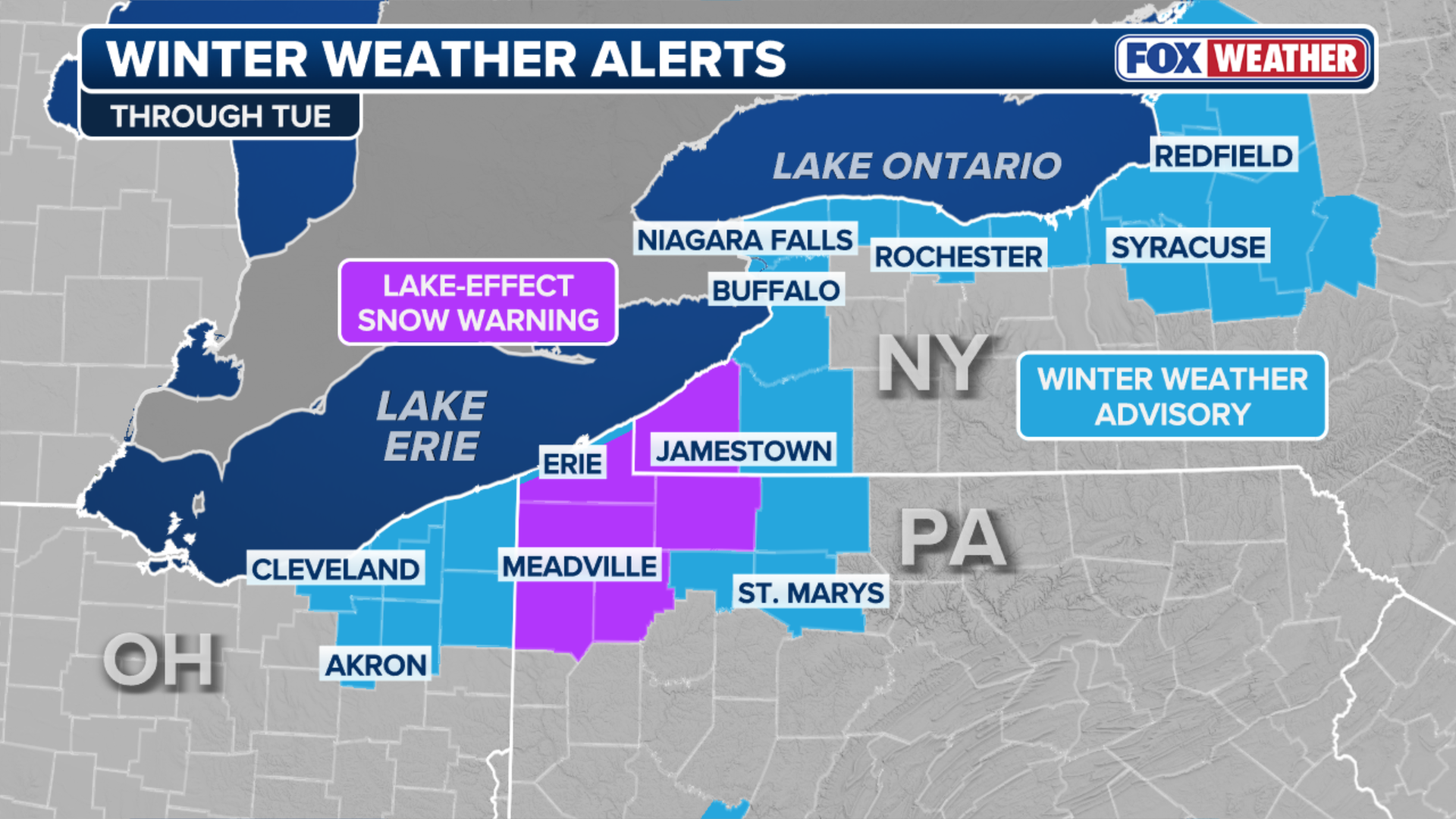 According to the FOX Forecast Center, the heaviest accumulation will be just inland from the lakeshore where elevation rises some 1,500 feet, part of a geographic feature called the Chautauqua Ridge.