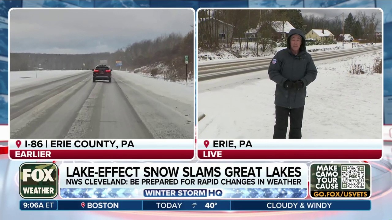 A final round of lake-effect snow is cranking over Lakes Erie and Ontario, creating hazardous travel conditions for the Interstate 90 and 86 corridors. Winter Weather Advisories and Lake-Effect Snow Warnings remain for parts of Ohio, Pennsylvania and western New York. FOX Weather Storm Specialist Mike Seidel has the latest conditions.