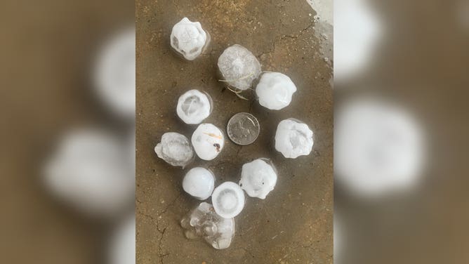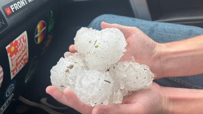 On Tuesday, severe thunderstorms produced large hail in parts of the Plains, including these large hailstones that fell in Kansas.