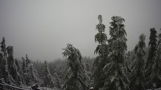 First snow of 2025-26 winter season falls atop Mt. Mitchell on North Carolina on Oct. 29, 2025.