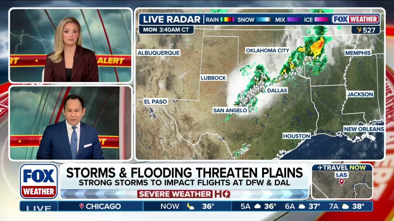 Meanwhile, a Flood Watch covers parts of North Texas, including the Dallas Metroplex through Monday afternoon, as these storms repeatedly soak many of the same areas.