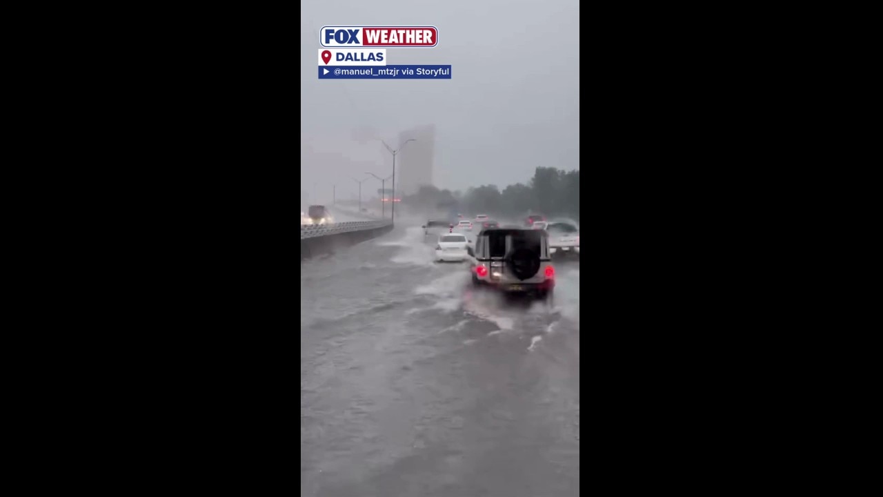 Heavy rain in Dallas, Texas, causes flooded roads for travelers on Saturday.