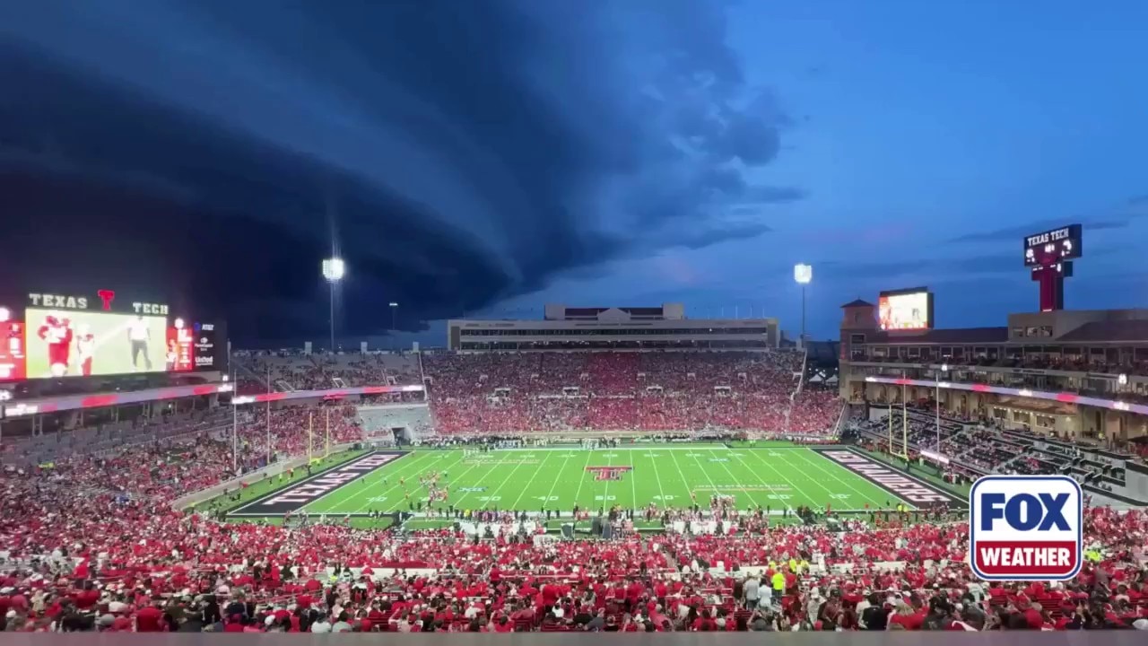 Watch: Timelapse video shows supercell thunderstorm descend upon Texas Tech game