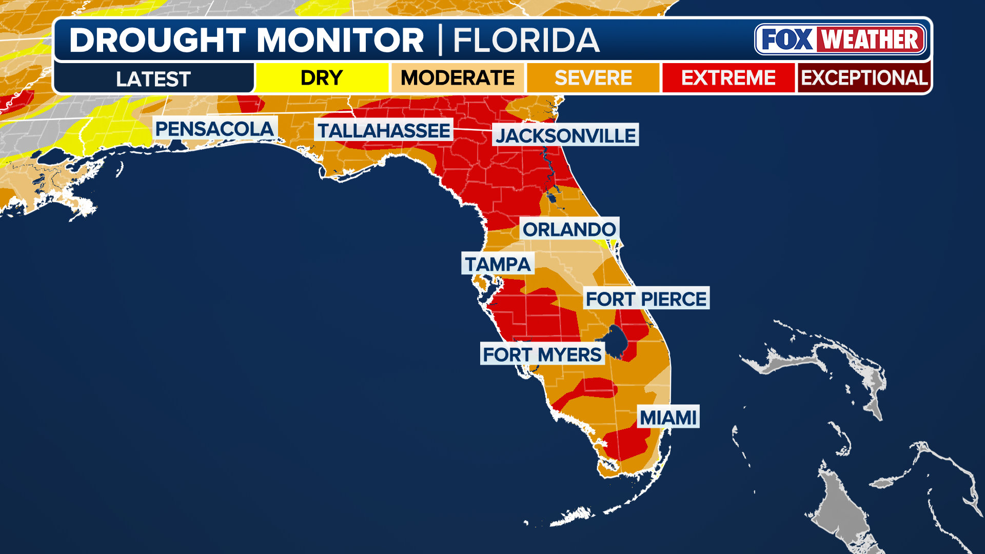 Some of the worst drought conditions are across North Florida and parts of the Panhandle.