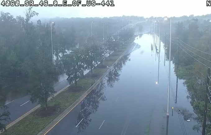 Images from Florida Department of Transportation cameras showed State Route 46 near Sanford completely underwater, even as the sun came up Monday morning.