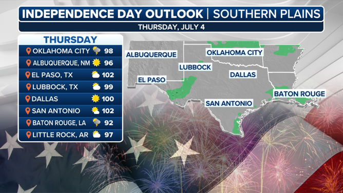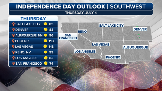 Meanwhile, California and the Southwest will experience intense heat on the Fourth of July, with record-breaking temperatures forecast for California's Central Valley.