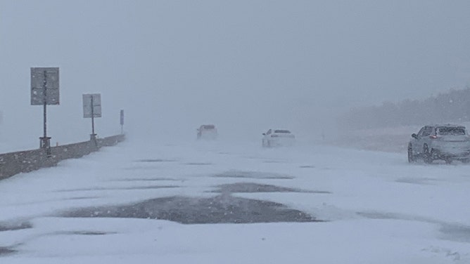 FOX Weather Watcher Roger Martin III shot this video of current road and visibility conditions in southwest Wichita, Kansas, on Feb. 17, 2022. "Very poor visibility at times," Martin said in a tweet.