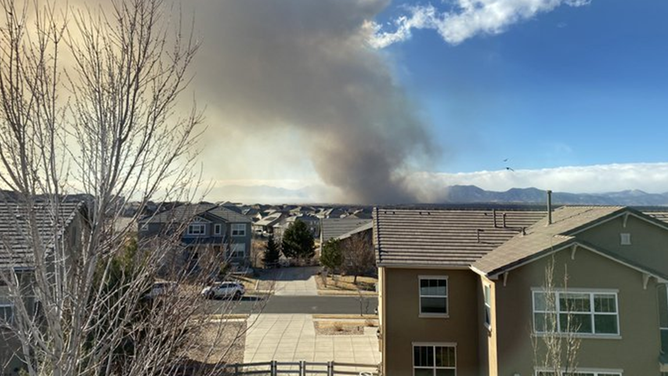 A view of the grassfires in Boulder from 60 miles away in Parker, CO. (Image: Heather Brinkmann/FOX Weather)