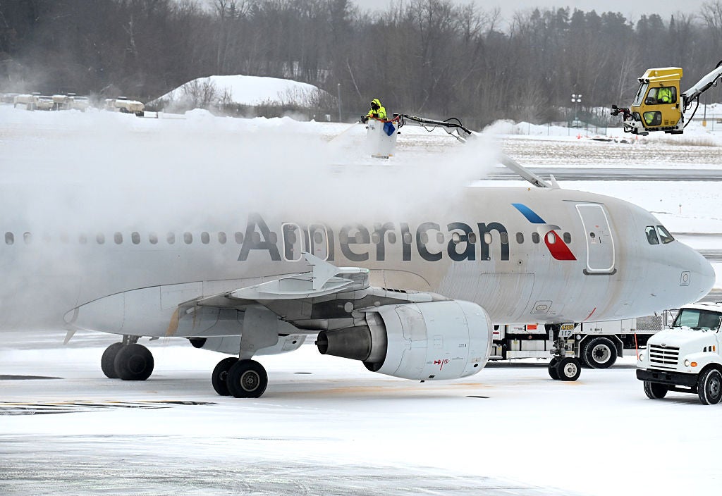 FILE: An American Airlines jet is deiced before departure at Albany International Airport in Colonie, N.Y.