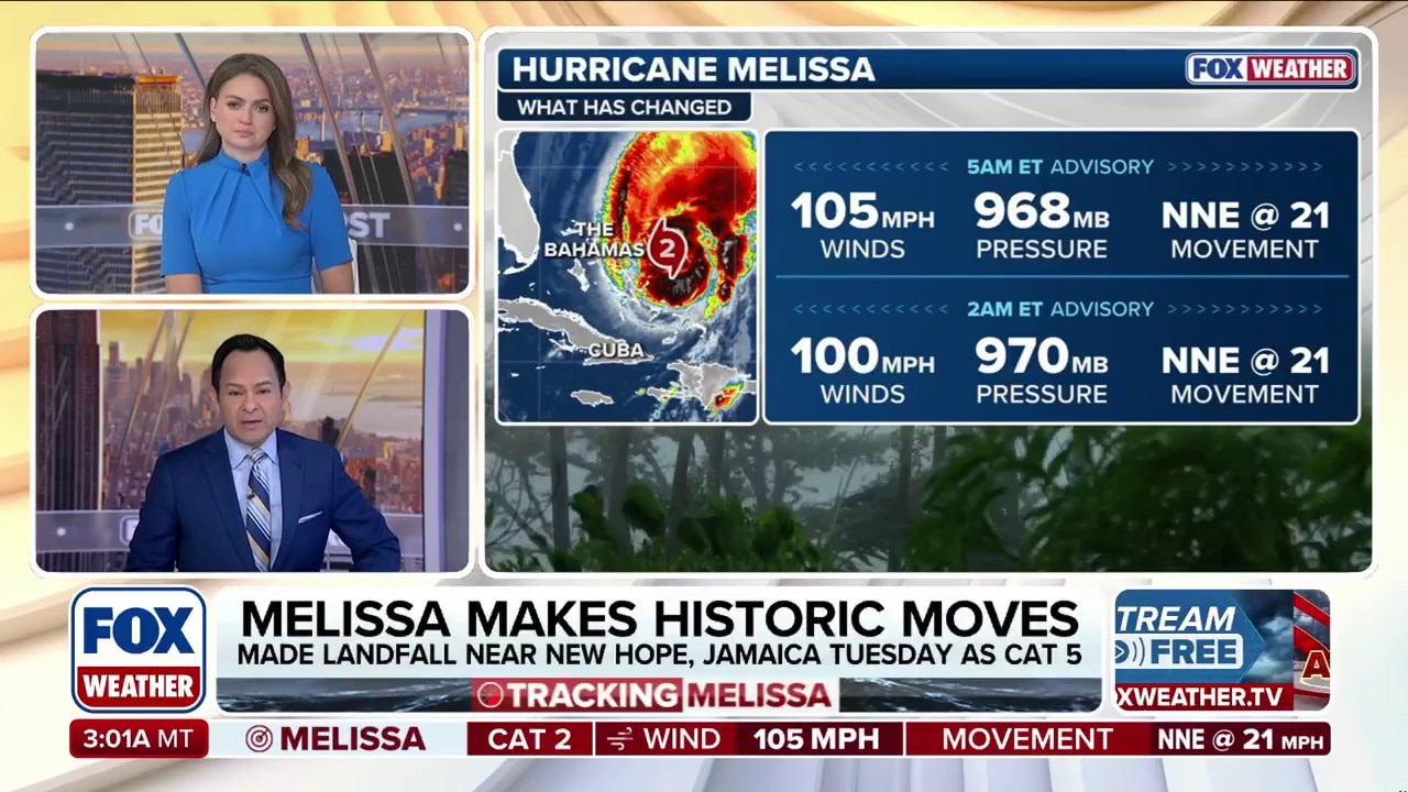 Forecasters with the National Hurricane Center say Hurricane Melissa has strengthened as it continues to pull away from the Bahamas and remains on track to move toward Bermuda days after the deadly storm tore across the Caribbean. FOX Weather Meteorologists Britta Merwin and Craig Herrera break down the latest forecast on Oct. 30, 2025.