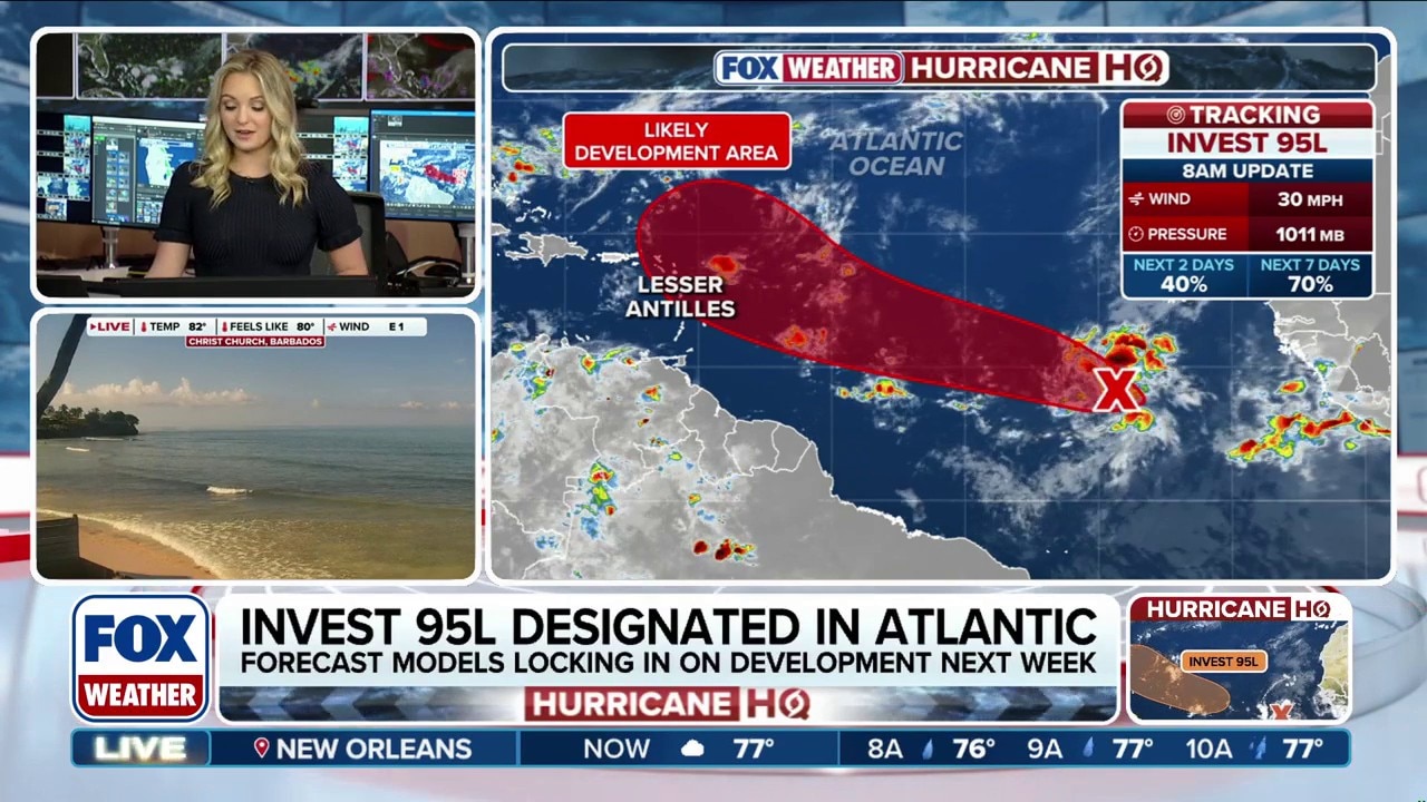 The National Hurricane Center (NHC) says Invest 95L is now likely to become a tropical depression later this week. FOX Weather Meteorologists Haley Meier, Bayne Frone and Michael Estime have the latest on Oct. 5, 2025.