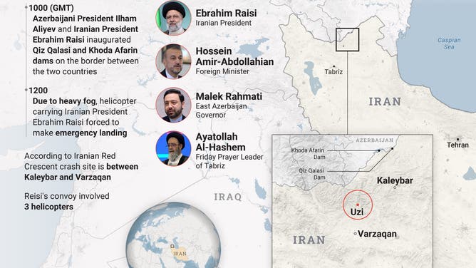 Search and rescue crews combed a rugged mountainside for 18-hours in fog and heavy rain before finding the charred remains of a helicopter that carried President Ebrahim Raisi, Iran's foreign minister and four others. The aircraft apparently struck the mountain in dense fog.