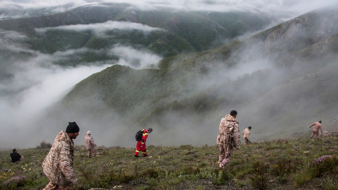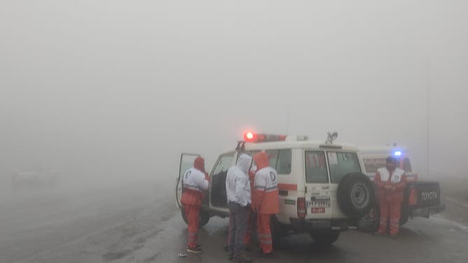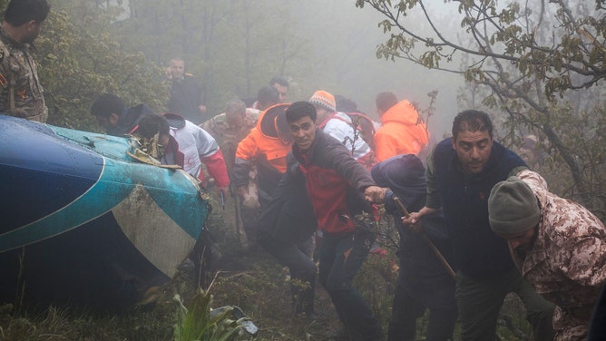 Video showed members of the Red Crescent Society struggling with body bags as they carried the president, foreign minister and four others across the rugged, slanted forest. Crews had to go in on foot because the fog was too thick for helicopters and the ground too steep for vehicles.