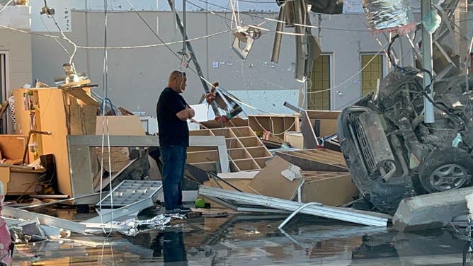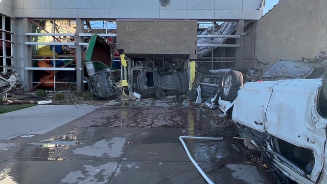 "I had a Buick Lucerne – it got picked up and tossed around and slammed into a tree," said Aaron Becker, who was inside the YMCA during the storm. "It was my first car… and when I walked out seeing that (damage)… it's just hard…now it's kind of like ‘what am I going to do?’ "