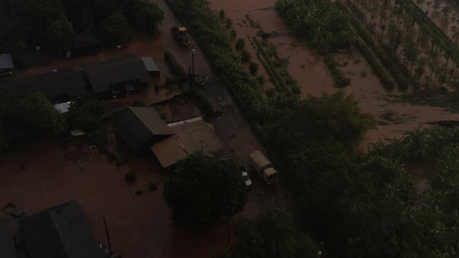 Flash flooding swamped the town of Haleiwa early Friday. According to the NWS, local emergency management says the town is cut off by floodwaters. Stranded residents told FOX Weather that people are on their roofs with their animals and have been told by 911 operators that first responders are unable to reach them.
