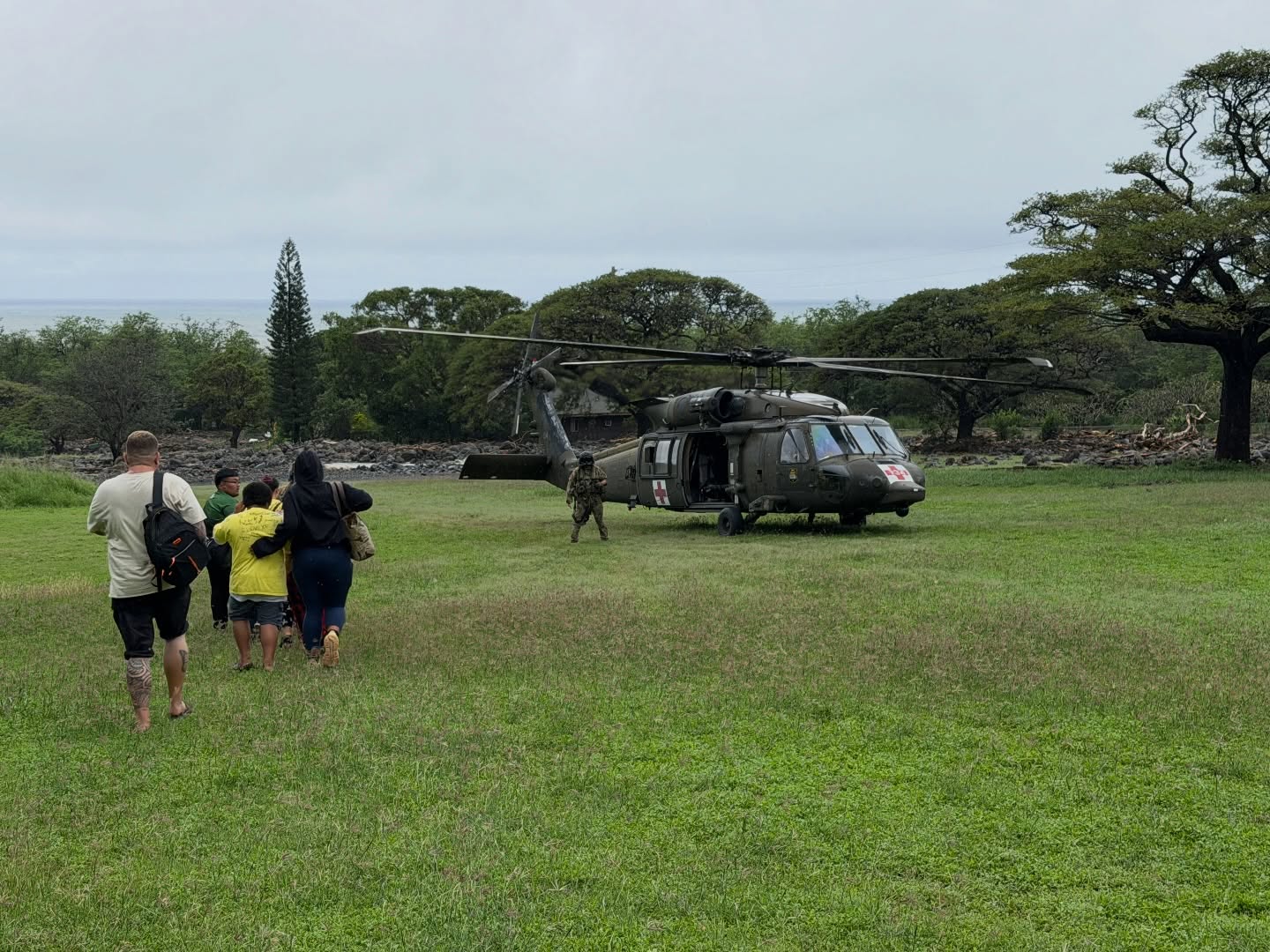 Honolulu Fire Department crews safely evacuated then airlifted 72 campers and 2 dogs from Our Lady of Keaʻau with support from Air1 and Hawaiʻi Army National Guard Black Hawk helicopters.