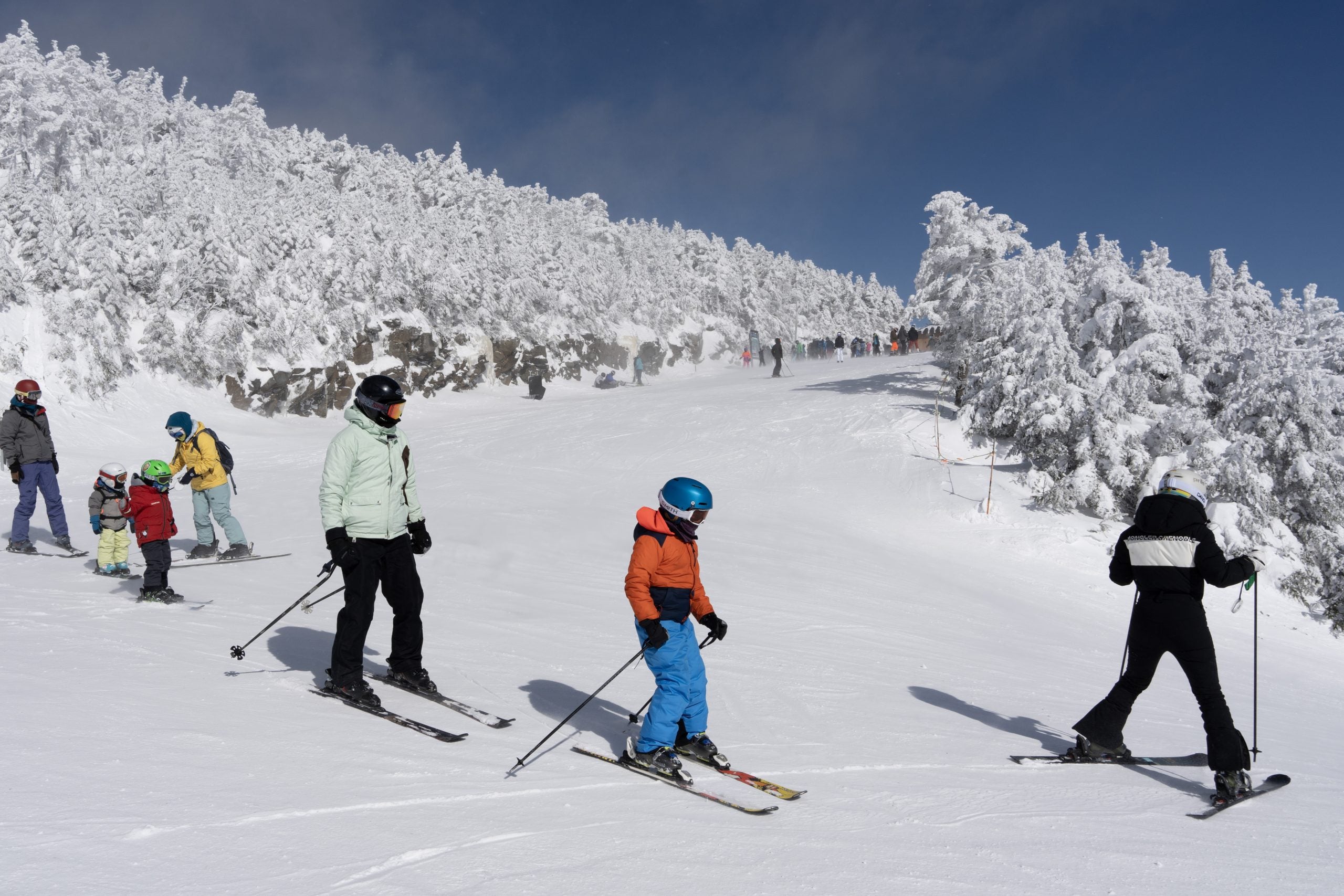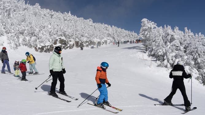 FILE: RUTLAND, VERMONT - The return of La Niña conditions increases the chances of a winter snow storm in the east of the US, much to the enjoyment of ski fanatics in the Northeast like this group at Killington Ski Resort in February, 2025. (Photo by Liao Pan/China News Service/VCG via Getty Images)
