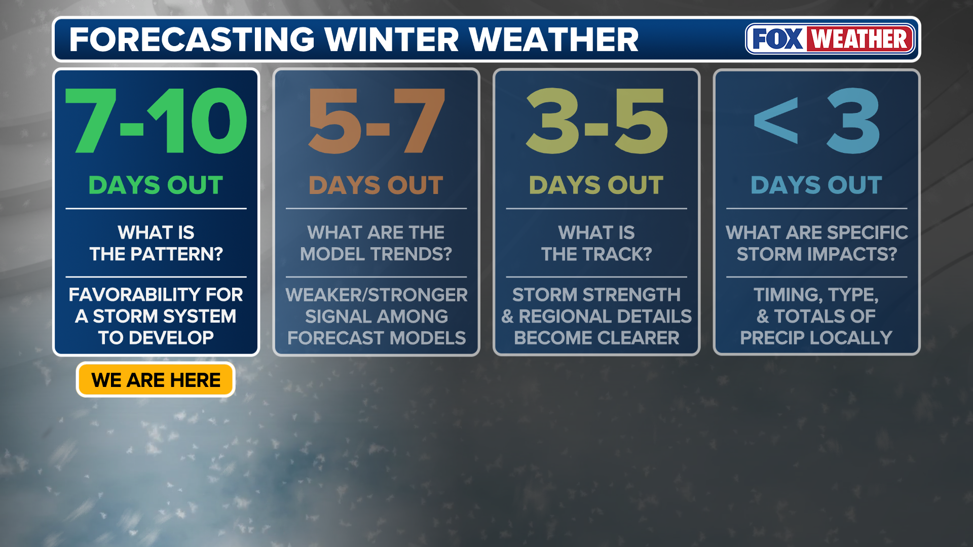 Longer-range forecast models show the possibility of a system developing along the East Coast as this pattern begins to take shape. The FOX Forecast Center notes that changes in the forecast can occur since we are over a week and a half out.