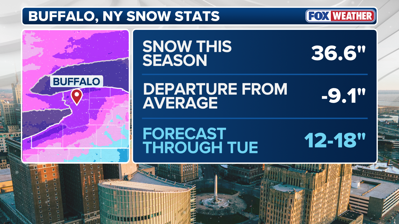 Areas like Buffalo, Syracuse, Rochester and Watertown in New York, and Marquette, Michigan, could still see up to a foot of snow as relentless rounds of lake-effect snow come through Tuesday.