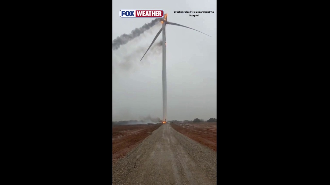 Video: Lightning strike causes wind turbine fire in Texas
