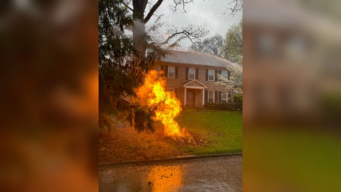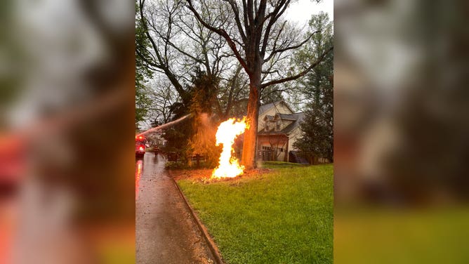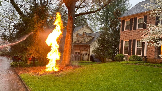 Lightning strikes gas line in Tennessee, sets tree on fire