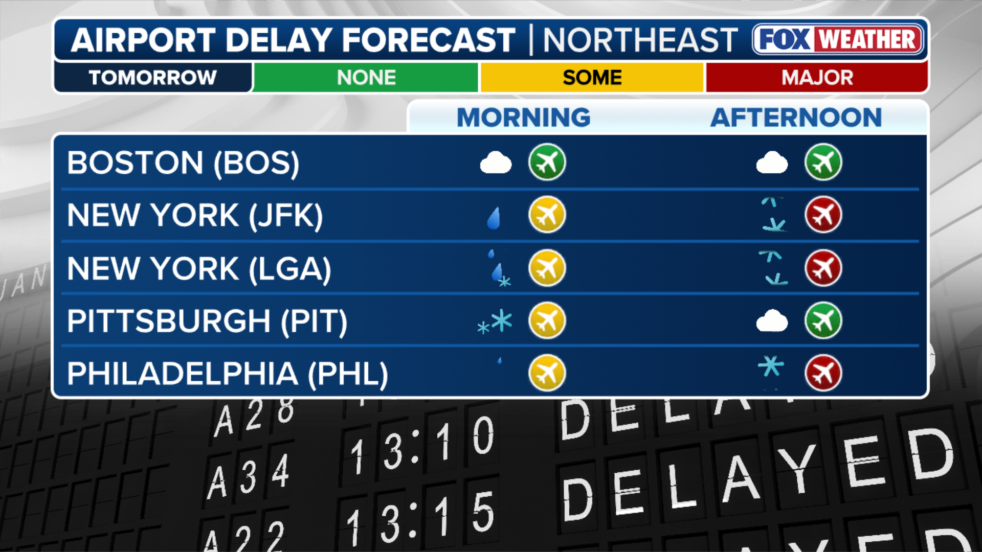Delays and cancellations at airports in the New York City area, Philadelphia, Boston and the greater Northeast are expected to pile up as the storm begins to take hold Sunday night and into Monday as travelers should brace for a hectic weekend.
