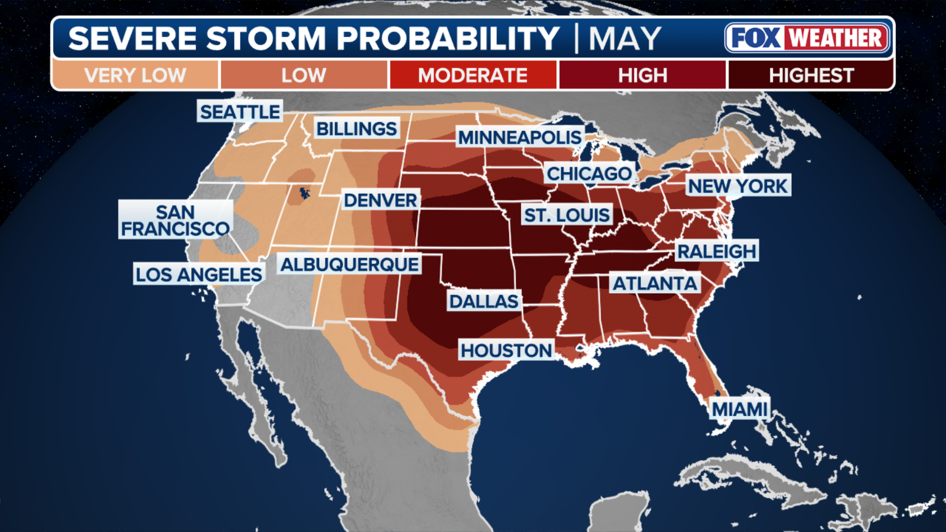 As we transition from April into May, both the coverage and intensity of severe storms typically increase. On average, May experiences the highest number of tornadoes, with the greatest risk once again concentrated in the central Plains and the Midwest.
