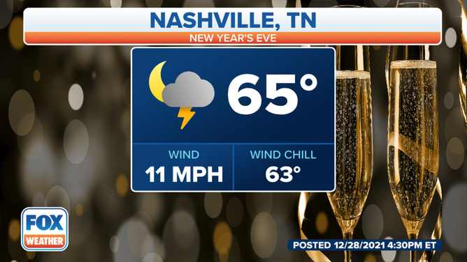 Other popular areas for celebration, like Atlanta and Nashville, will have more active weather, but temperatures will remain warm.