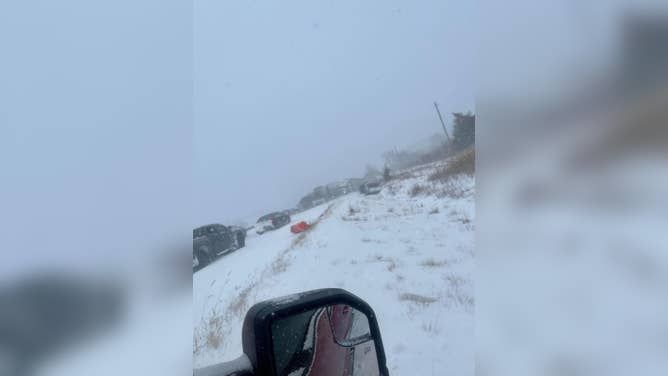 "The highway is a sheet of ice," said storm chaser Simon Brewer who took the video. "The winds here in this area are so high they are just pushing trucks off the highway."