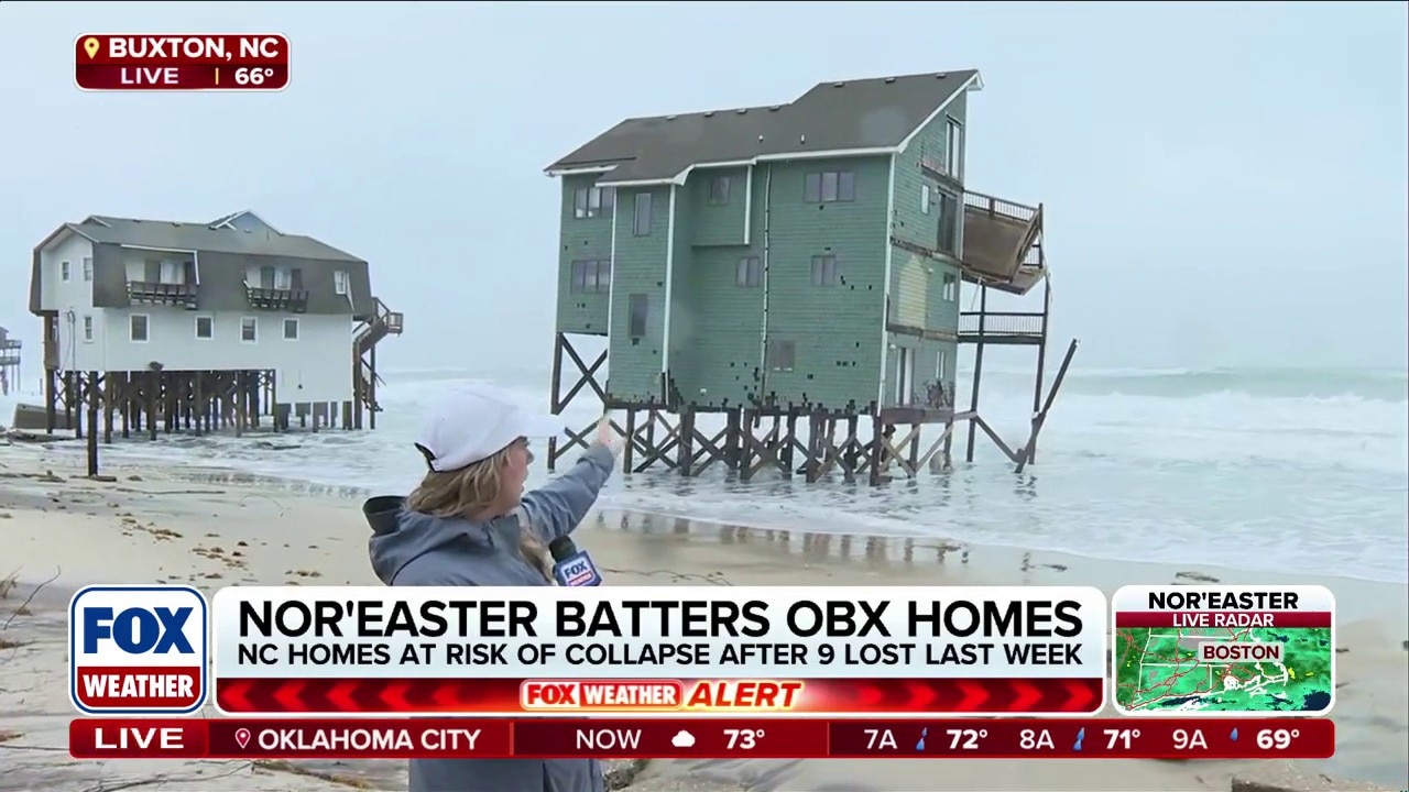 Although the worst of the nor'easter has passed North Carolina's Outer Banks, homeowners are bracing for the next high tide as homes along the Cape Hatteras National Seashore hang on by a thread. FOX Weather Correspondent Katie Byrne has the latest.