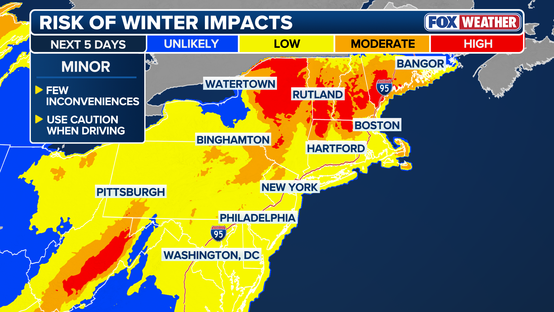 Chance of 6 inches of snow in the Northeast