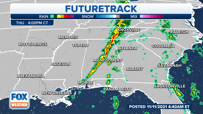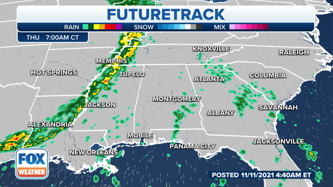 It will continue to move east on Thursday, where rain is expected from the Upper Great Lakes and Ohio Valley, south into the Tennessee Valley and Southeast.