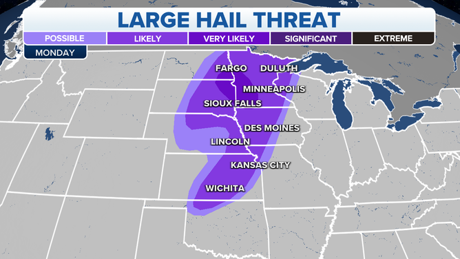 Large hail and strong winds present the biggest threat Monday.