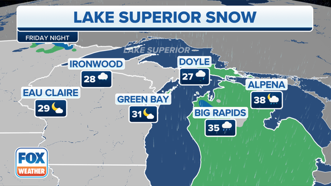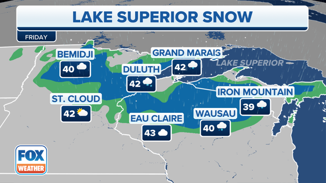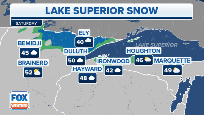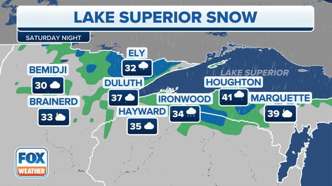 "That snowfall is going to start to increase in intensity for those of you in places like Duluth, but by the afternoon time, it becomes scattered," FOX Weather meteorologist Jason Frazer said. "Some of you may end up seeing a little bit of rain mixing in with this towards the latter half of the evening."