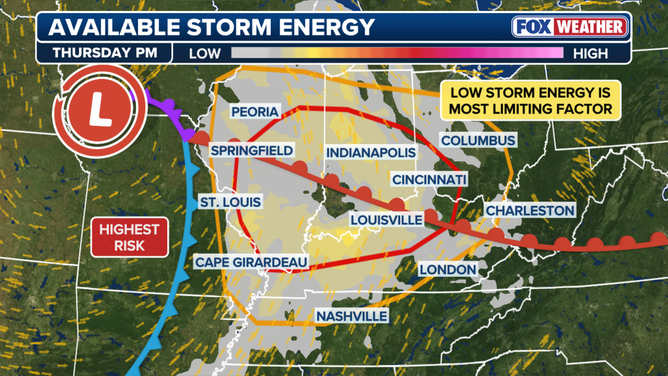 According to the FOX Forecast Center, while the available energy may cause storms to struggle to intensify, the atmospheric lift will be more than enough to compensate to produce severe weather.