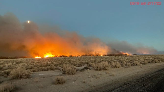 The fire started Wednesday around 4 p.m. in Inyo County, east of the Sierra Nevada Mountains. A Wind Advisory was in effect for the region Wednesday with reported wind gusts of 40-55 mph.